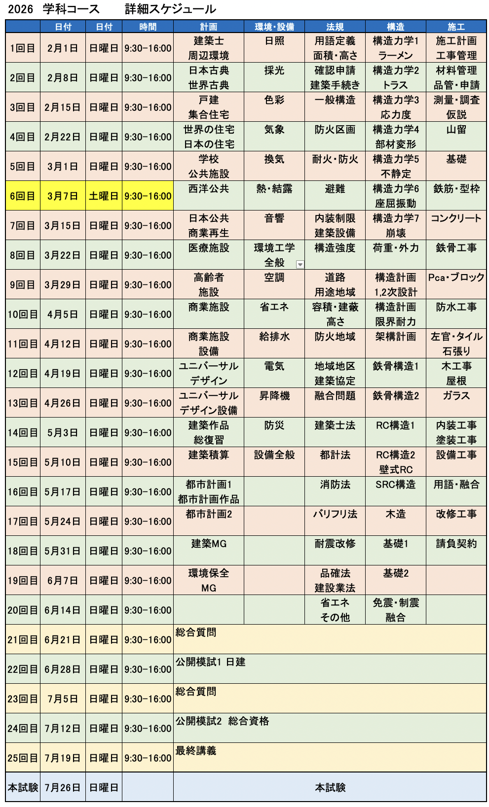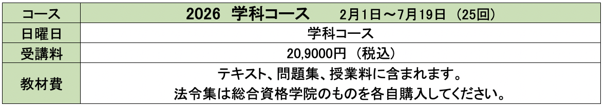 この講座は、学科に合格することに主眼を置いてカリキュラムを設定しています。つまり、半年程度では内容を完全に理解することは到底無理なので過去問を徹底的に学習する方式です。