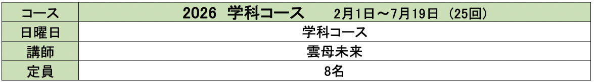 覚悟を決めてもらったのみ人を受け入れますので、その覚悟ができた方から日曜日の学科コースにお申し込みください。