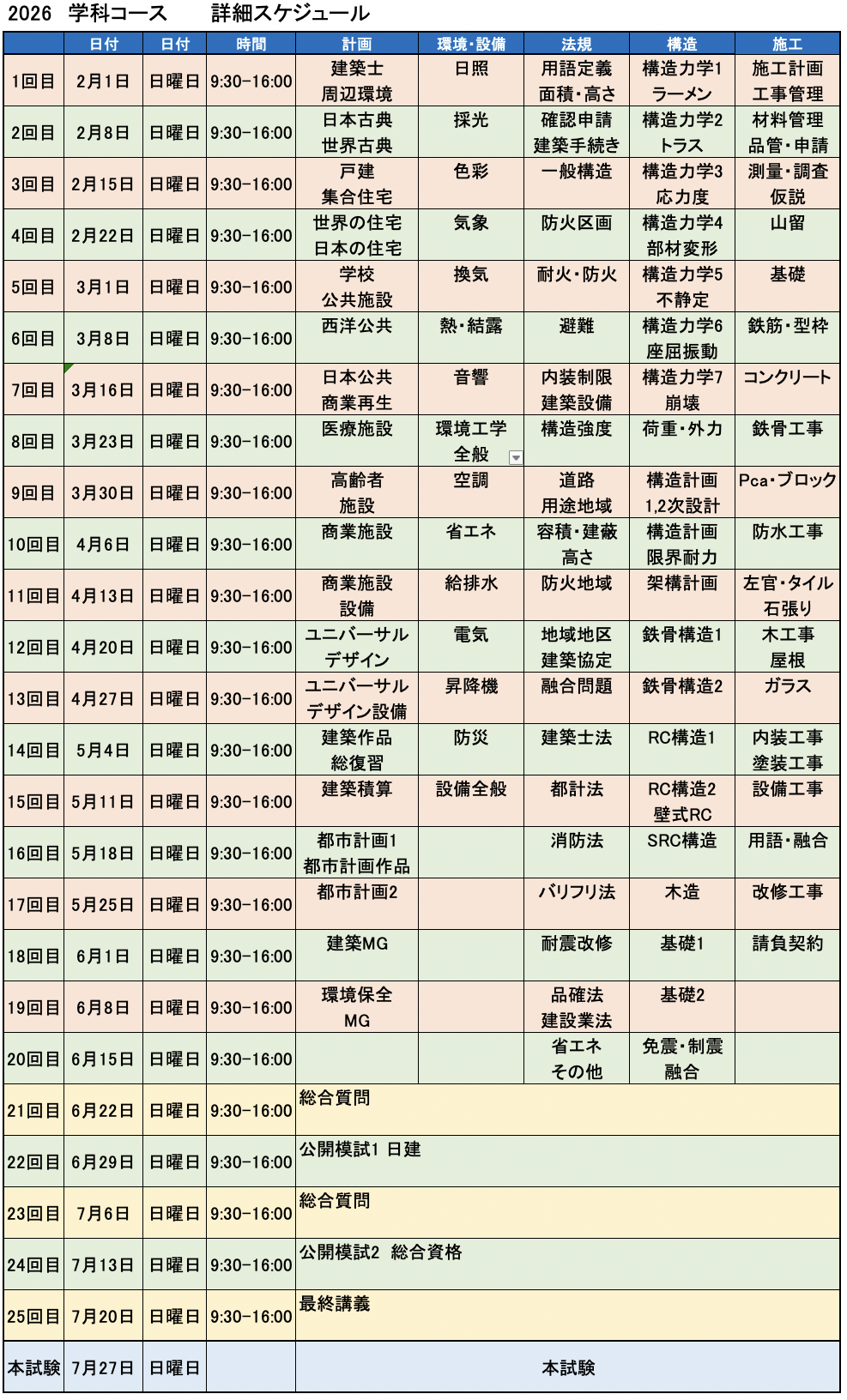 2026年一級建築士『学科コース』