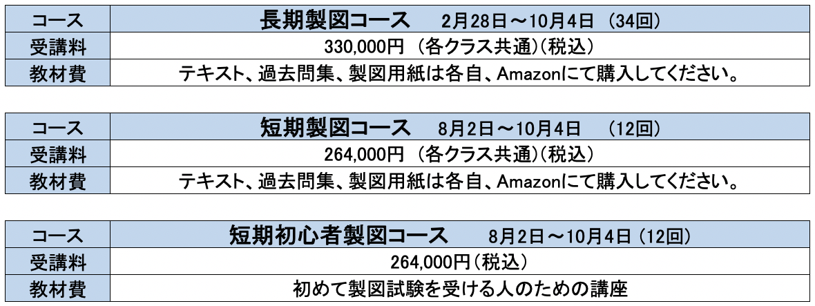 令和8年の学科コース、長期製図コースの募集を開始しました。製図は、もはや長期コースで実力をつけないと太刀打ちだきない時代に突入しました。