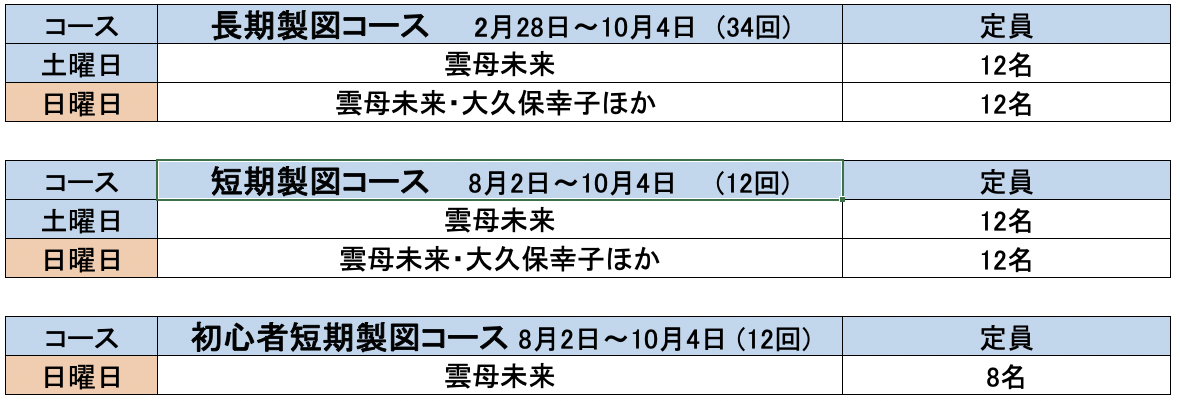 2025年長期製図コース、学科コースの募集を開始しました。